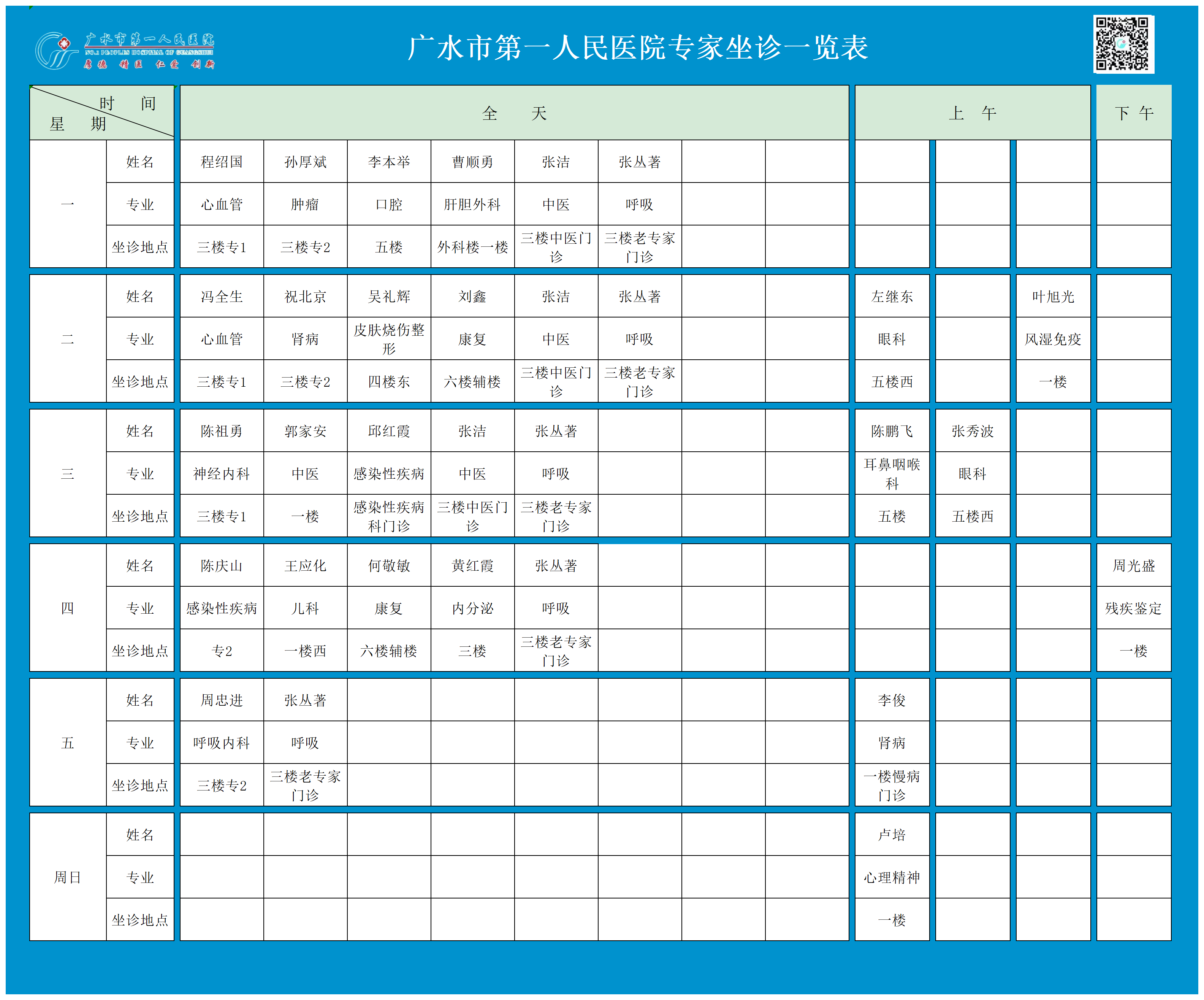 廣水市第一人民醫(yī)院專家門診一覽表