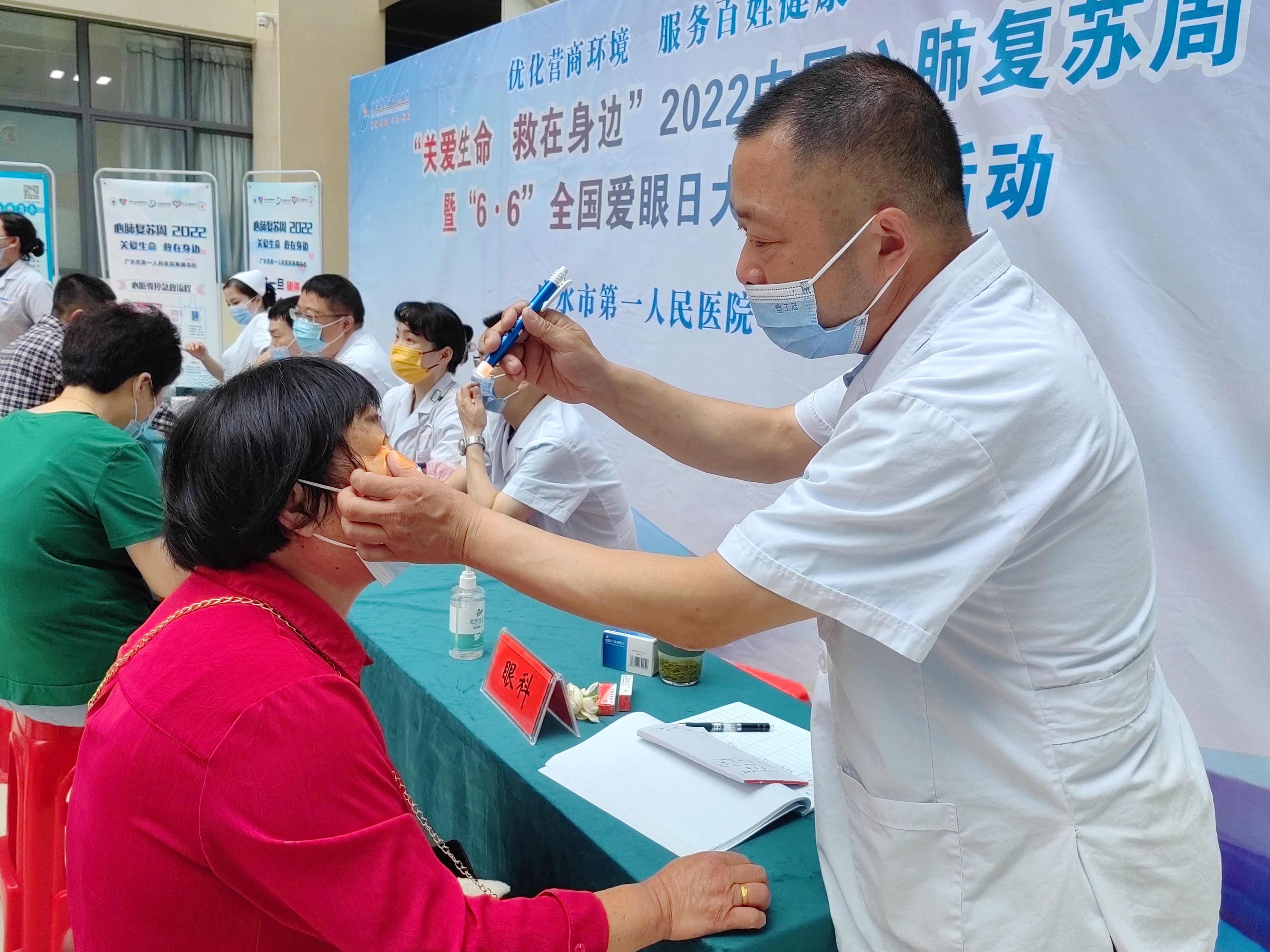 為優(yōu)化營商環(huán)境,服務百姓健康,6月1日上午,廣水一醫(yī)院組織心血管內科、眼科、口腔科、神經內科等多學科專家團隊,在醫(yī)院門診綜合樓一樓大廳開展以“關愛生命 救在身邊”為主題的2022中國心肺復蘇周暨“6.6”全國愛眼日大型義診活動。