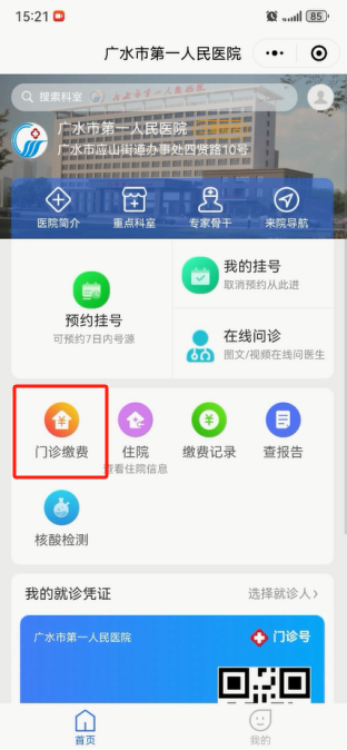 1、使用微信或支付寶搜索“廣水市第一人民醫(yī)院”小程序,或使用微信或支付寶掃描門診流程單下方二維碼進(jìn)入小程序繳費(fèi)頁(yè)面。