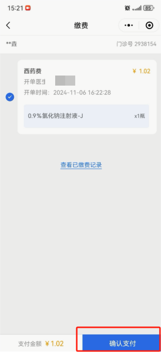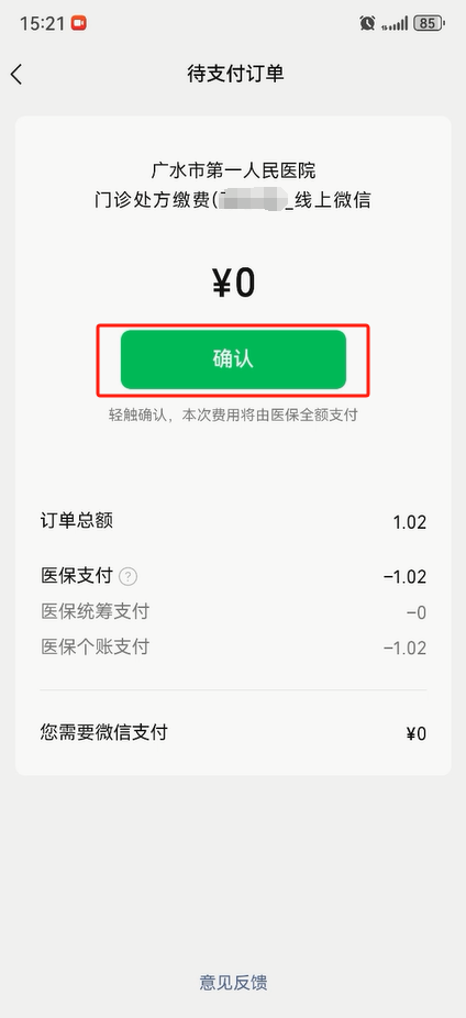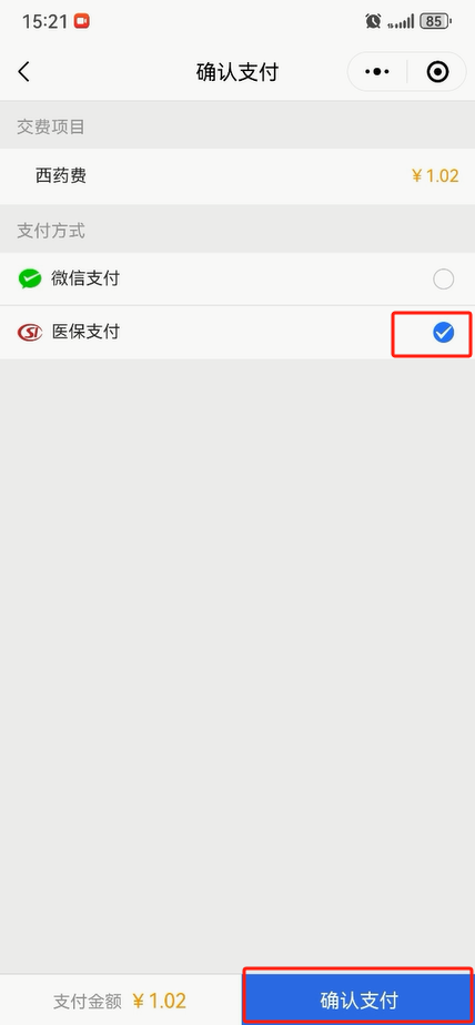 3、選醫(yī)保支付后,點(diǎn)擊“確認(rèn)支付”