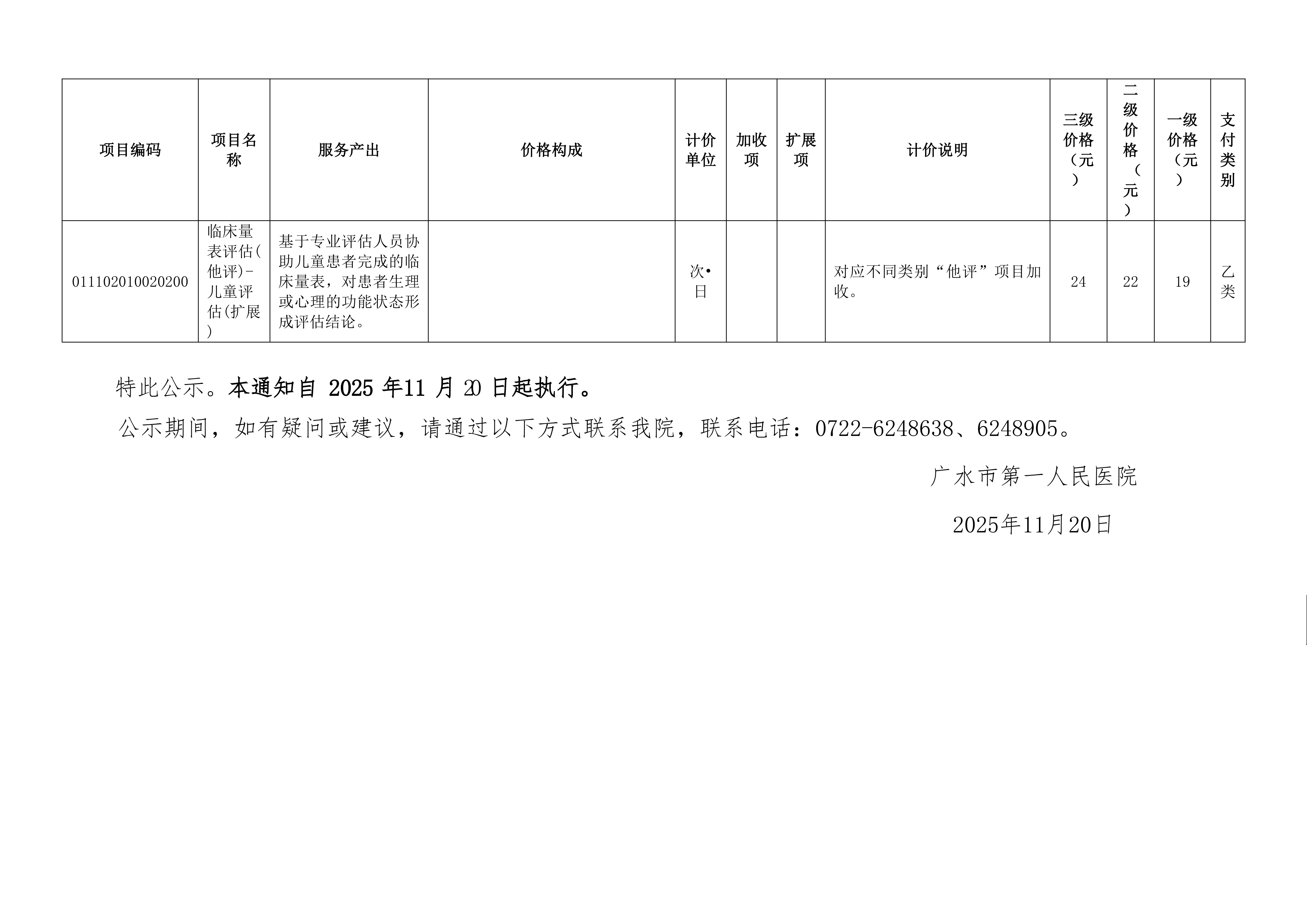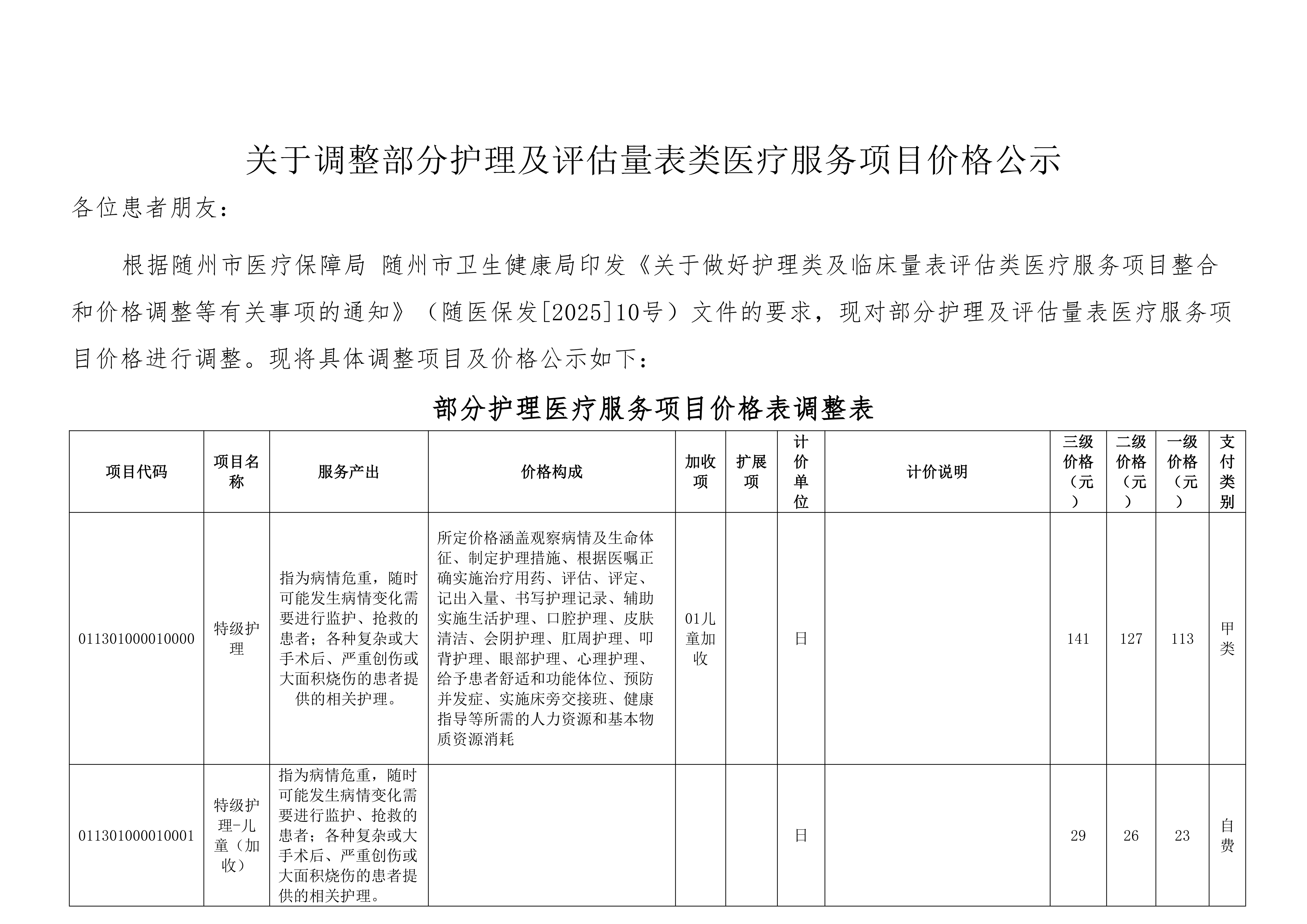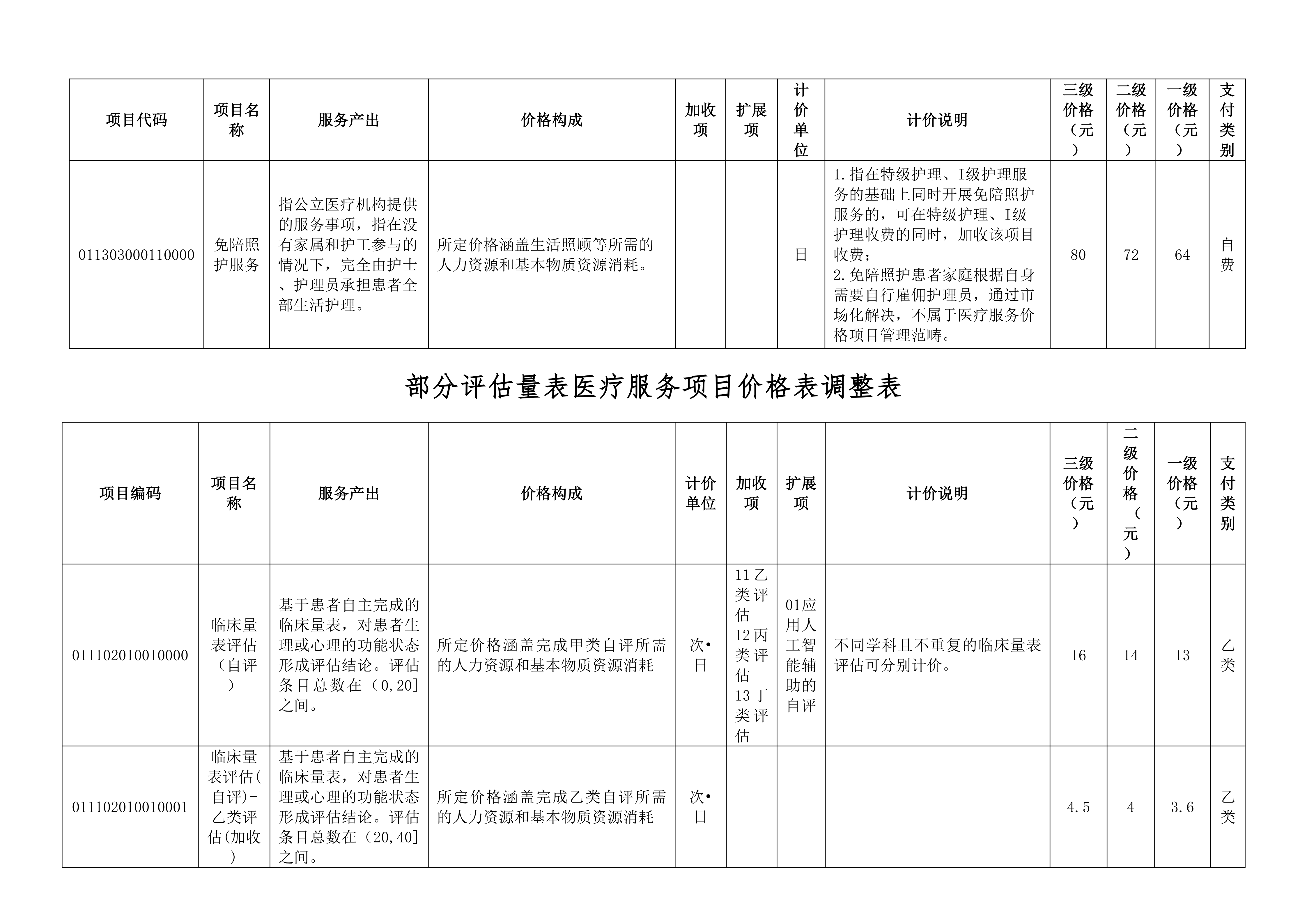 關(guān)于調(diào)整部分護(hù)理及評(píng)估量表類(lèi)醫(yī)療服務(wù)項(xiàng)目?jī)r(jià)格公示